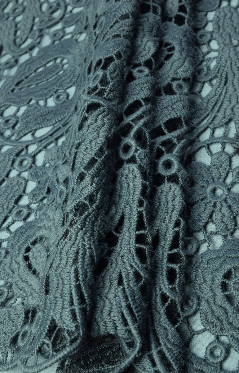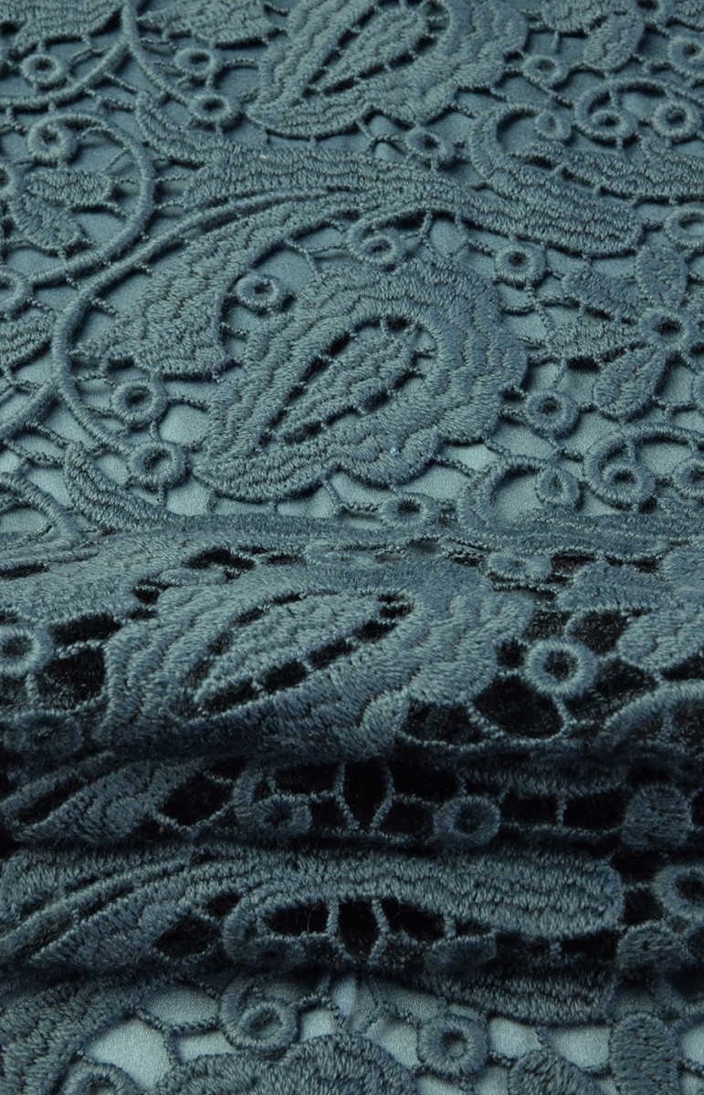 Den sidste kupon af guipure blonder i blågrøn turkis med mål: 75 cm* 120 cm.