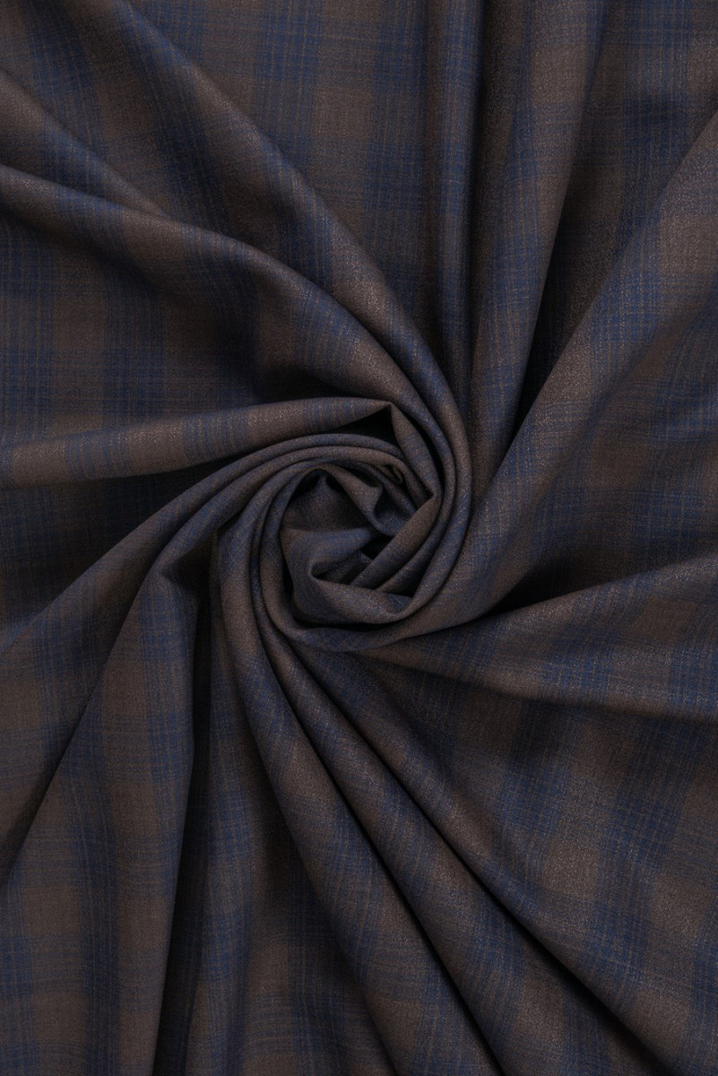Wełna w kratę niebiesko-granatową KUPON 110 cm