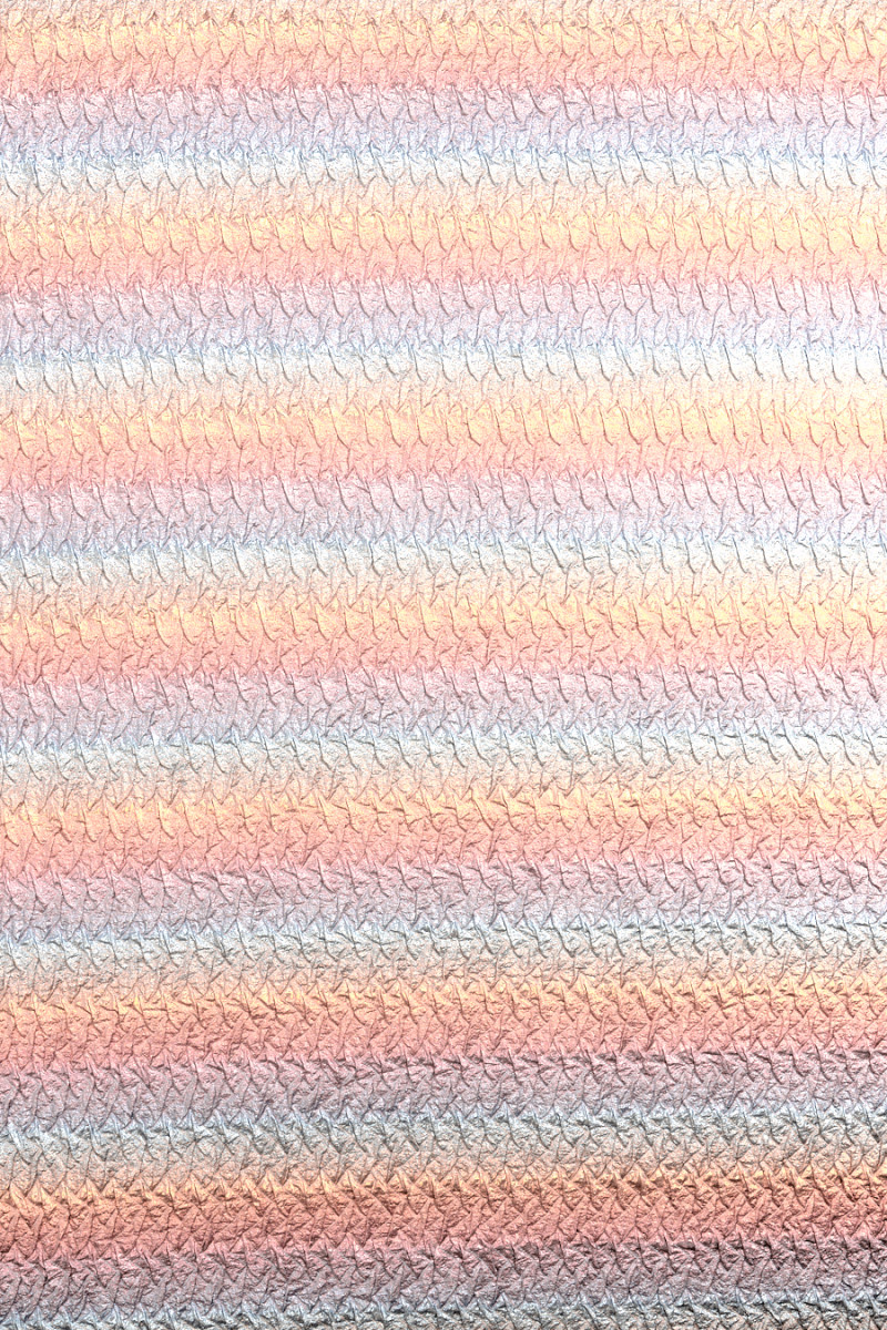 Italiensk jacquard kostume stof vævet i form af flerfarvede striber, der ligner en regnbue. Stoffet er blødt, elastisk med regelmæssige folder, hvilket giver det et unikt udseende. Materialet er dobbeltlags, så der er ikke behov for at bruge foring.