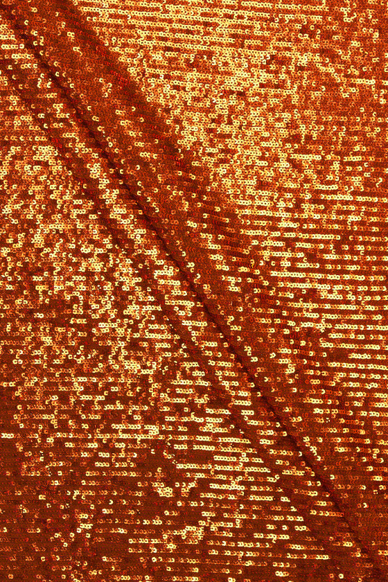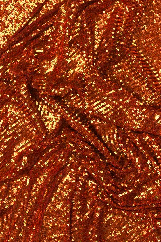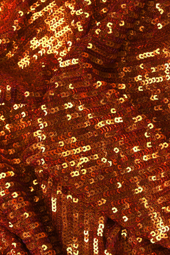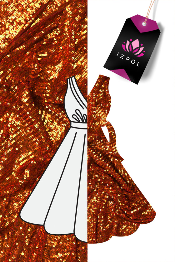 Italiensk aftenstof i en sjælden orangerød farve. Smukke, små, glitrende pailletter, tæt syet på et elastisk net i samme farve (række for række uden pause, så de ikke kommer fra hinanden, når de strækkes og dækker tyllen). Et kraftigt, smukt skinnende stof, elastisk langs længden - perfekt til syning af tøj med et smalt, tætsiddende snit. Et fantastisk forslag til folk, der kan lide originale farver, der kan lide at skille sig ud i mængden.