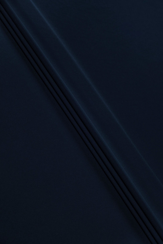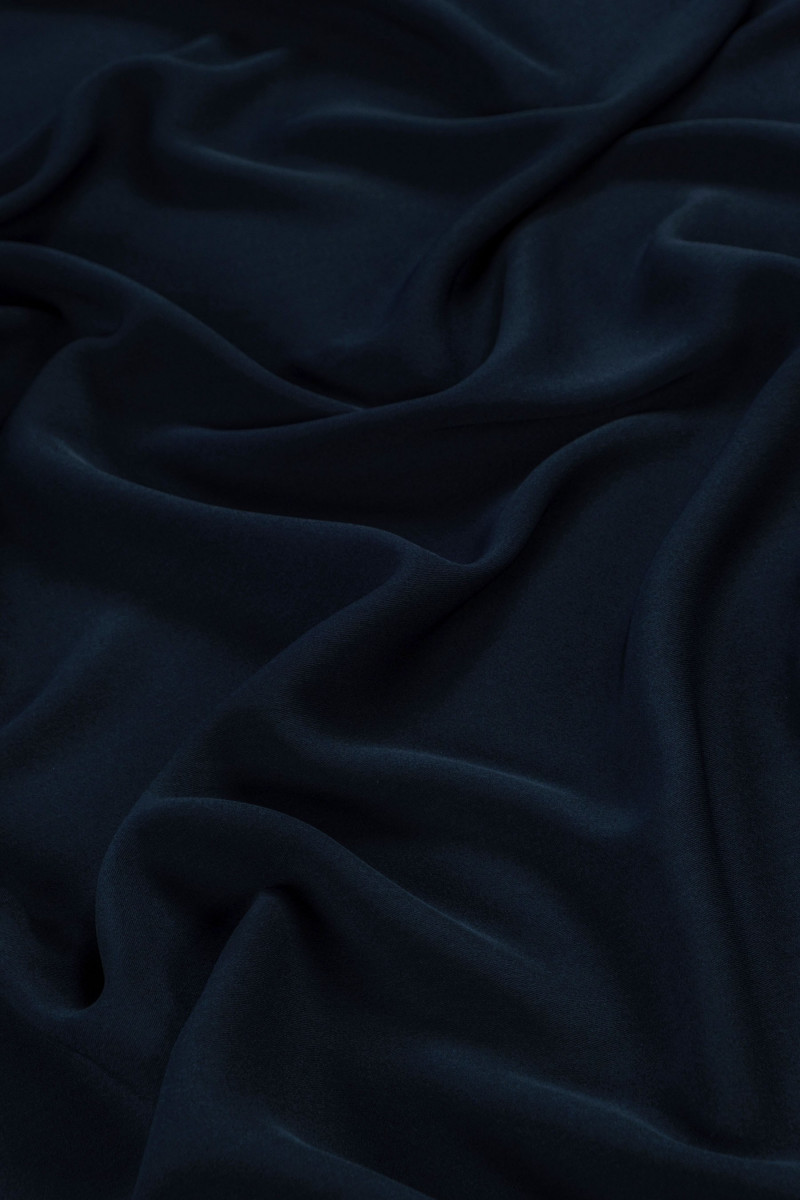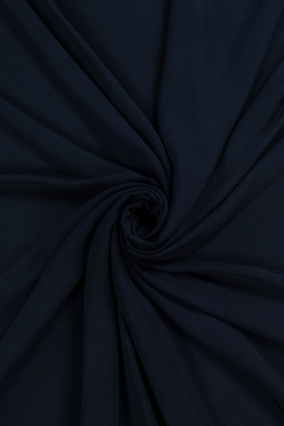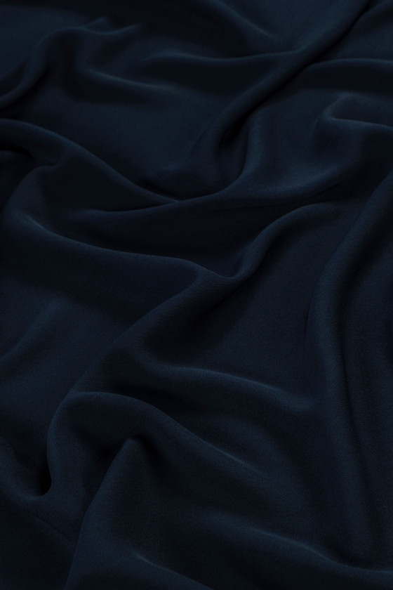 Italiensk cadi kjole stof i marineblå. Cadi kjole stof er uigennemsigtigt, kødfuldt, flydende (tungt) og uelastisk. Du kan bruge den til at sy kjoler, bluser, nederdele, bukser, kostumer.