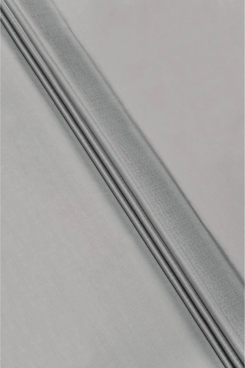 Italiensk chiffon polyesterstof med en interessant vævning af to farver tråde - grafit og hvid, som skaber en tofarvet effekt. Stoffet er meget delikat, luftigt, gennemsigtigt og ikke-elastisk. Perfekt til luftige kjoler, nederdele og bluser, du kan også sy et smukt tørklæde af det.