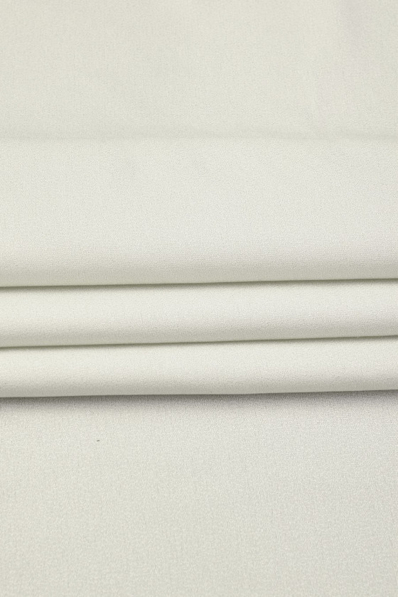 Silkestof i lys askefarve med en vævning, der ligner georgette. Det uigennemsigtige, matte stof sidder fint på figuren. Et smukt forslag til en formel kjole, nederdel, bluser.