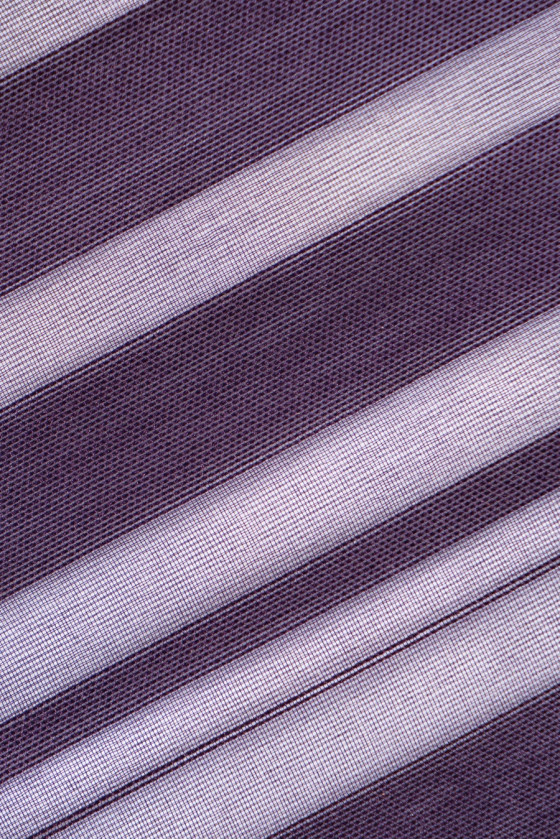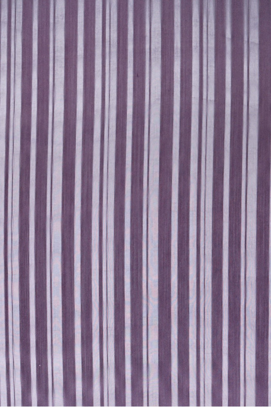 Italiensk silkeorganza med et dæmpet lilla stribet motiv. Tyndt, stift, gennemsigtigt stof - perfekt til syning af en bluse, nederdel, kjole.