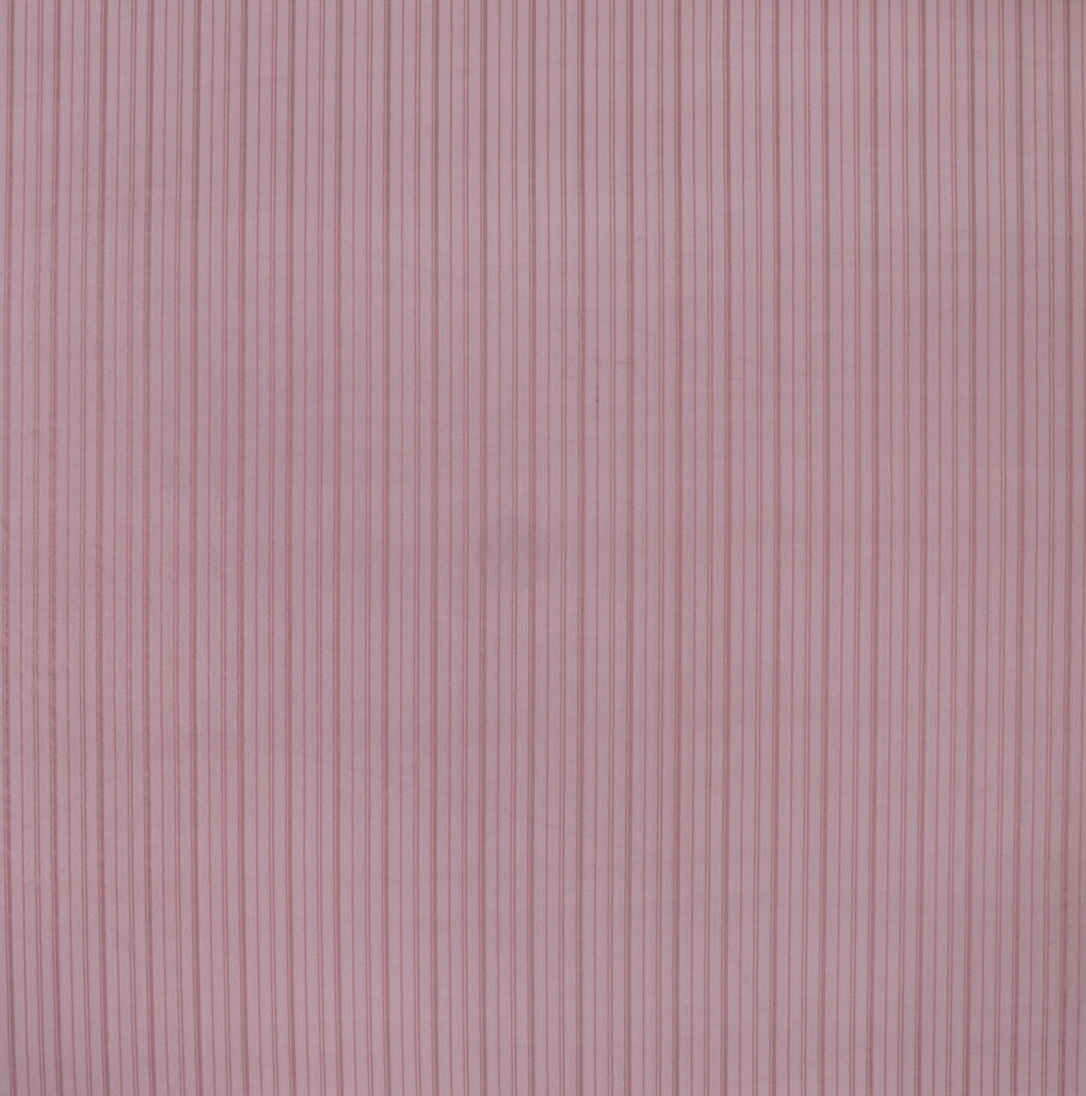 Italiensk chiffon krøllet 100% silke i mørk, beskidt pink. Devore stof med et stribemotiv på 0,8 cm, 0,5 cm og 0,2 cm bredder. Devore-stoffet er en kombination af krøllet chiffon med ekstra satinstriber. Stoffet er tyndt, gennemsigtigt, ikke-elastisk, meget delikat. Perfekt til syning af en luftig bluse, nederdel, kjole eller sjal.