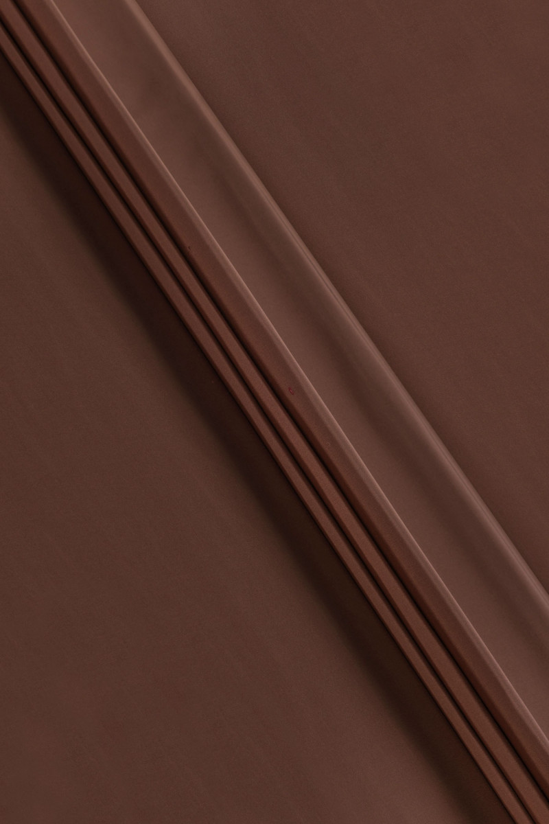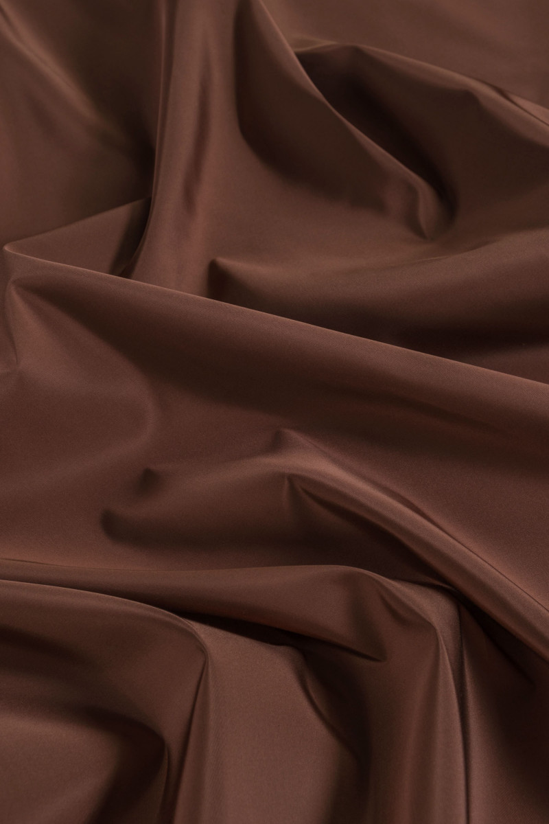 Italiensk 100% silketaft stof i lysebrun med delikat ribbet vævning. Naturlig silketaft er et tyndt, men stift stof med en delikat glans, der er karakteristisk for silkestoffer. Perfekt til syning af en kjole, nederdel, jakke eller til dekorative formål.