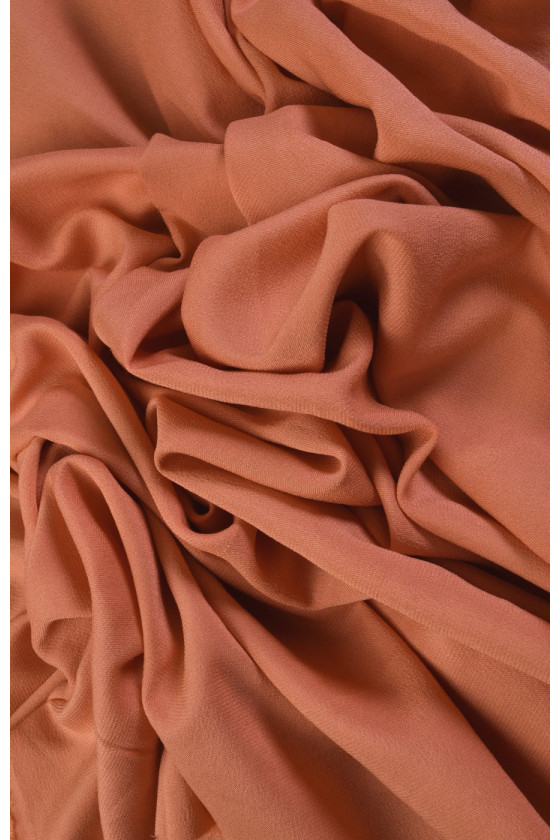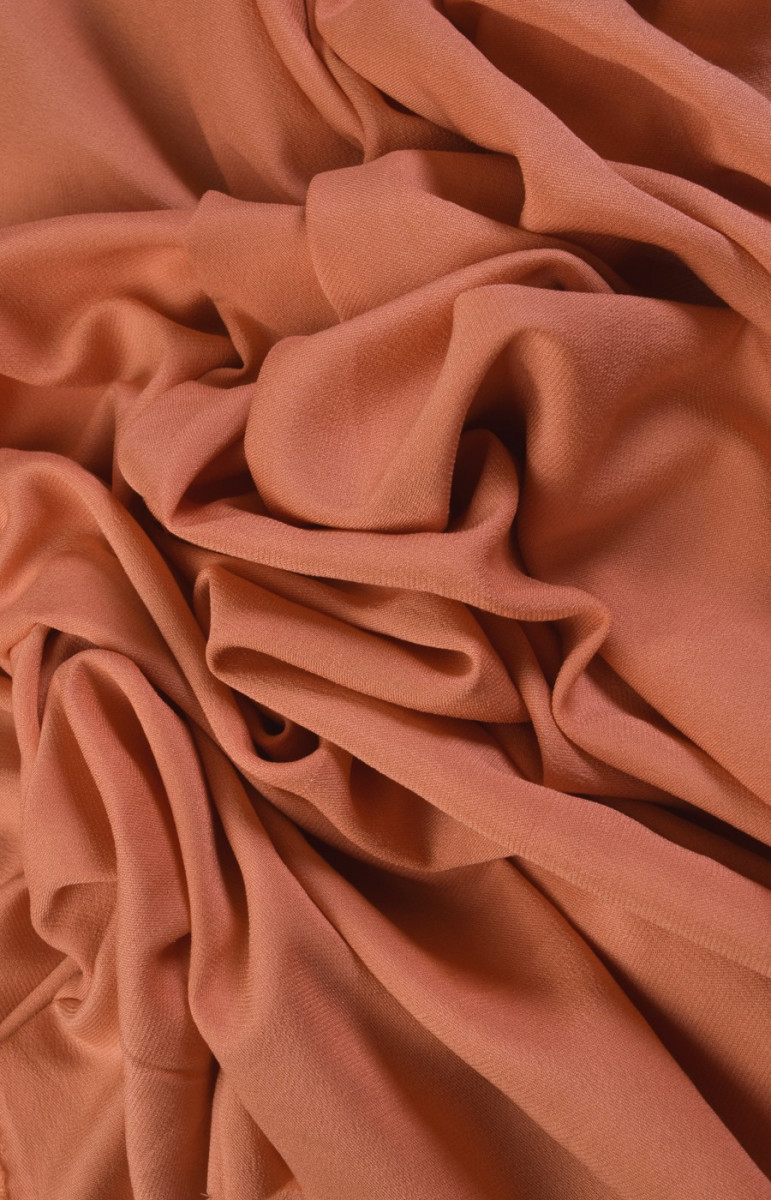 Silke georgette er et delikat stof med en delikat glans. Det kan bruges til at fremtrylle kjoler, sarte bluser, elegante skjorter. Den kan også bruges som base til blødere silke og blonder. På billedet i fersken/lys koralfarve.