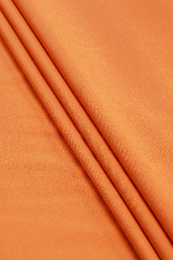 Kompakt, elastisk jerseystrikket stof i orange. Vi anbefaler det til syning af behageligt tøj - kjoler, nederdele, træningsdragter.