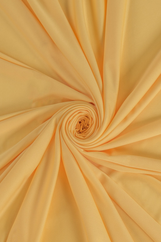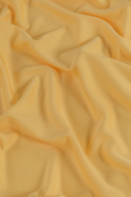 Italiensk strikket polyamidstof i gul. Strikket stof med glat, tæt vævning, mat, elastik - perfekt til syning af en bluse eller t-shirt.