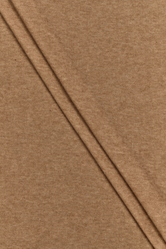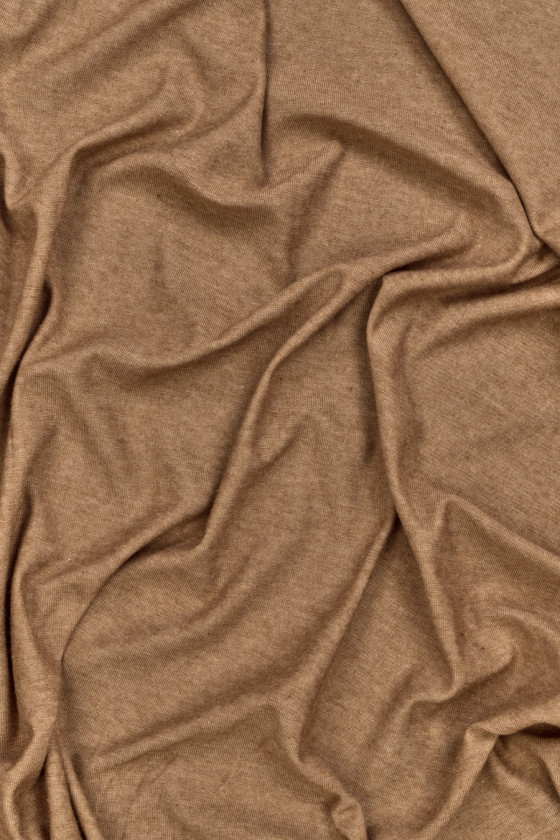 Italiensk viskose strikket stof i beige - meleret. Det strikkede stof er blødt, behageligt at røre ved og elastisk. Materiale beregnet til bluser, T-shirts, t-shirts.
