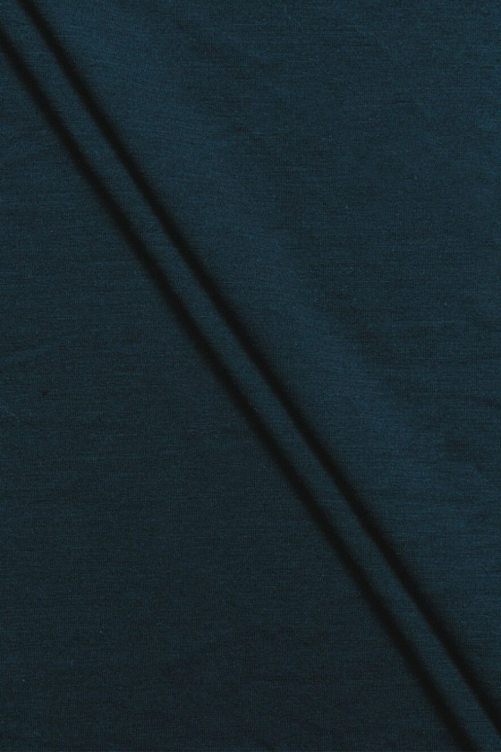 Italiensk polyesterjersey i marineblå. Strikket stof med en tæt vævning, medium tykkelse, mat og elastisk. Den er perfekt til syning af hverdagstøj, såsom kjoler, nederdele, tunikaer eller lette sweatshirts.