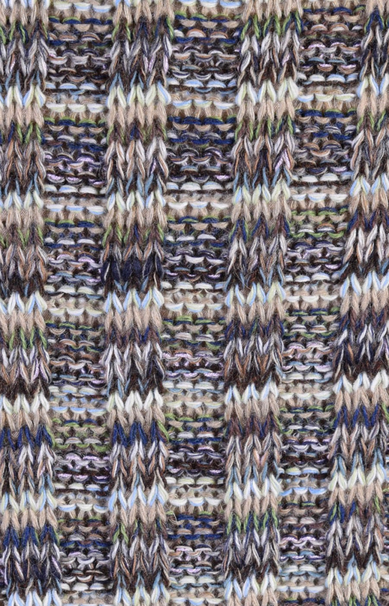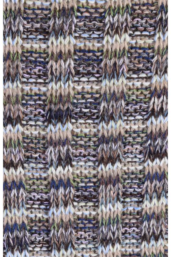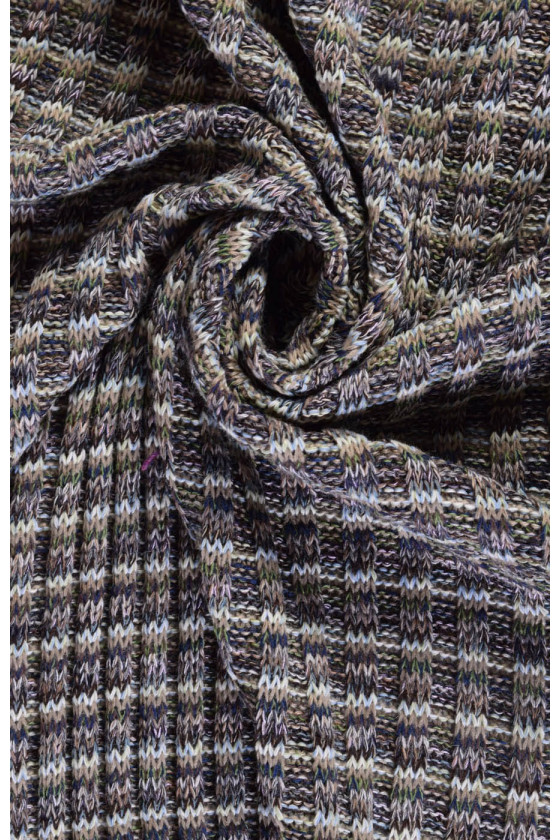 Uldstrikket stof af mellemtykkelse. Lidt elastiske, flerfarvede tråde. Perfekt til trøjer, kjoler, turtlenecks.