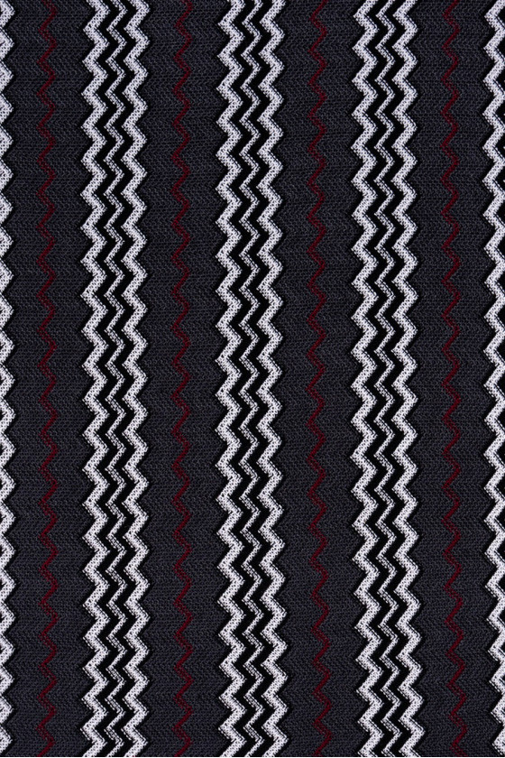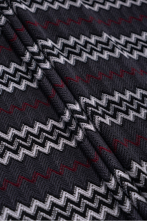 Italiensk sweaterstrik med løs vævning, vævet af naturlig uld, polyamid med akryl. Et karakteristisk motiv af farverige zigzags fra det velkendte modehus. Vi syr det omkreds.